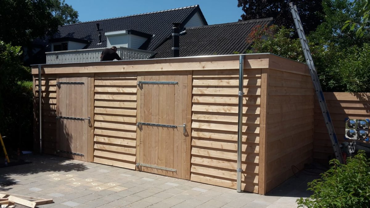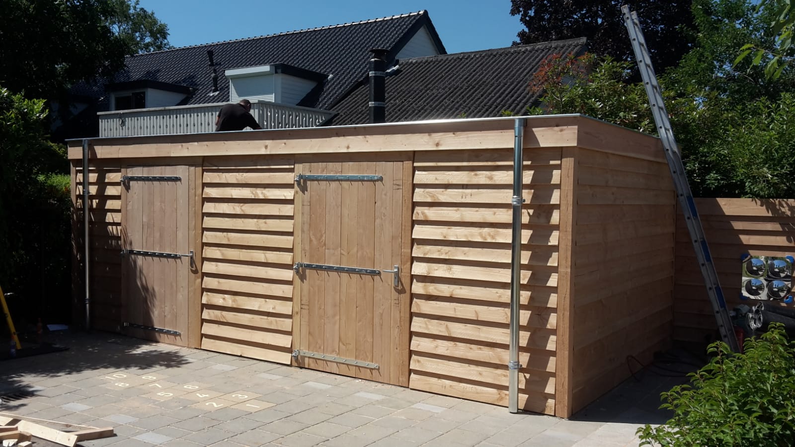 De bouw van de tuinschuur begon met het advies over de vormgeving. Vanuit alle input hebben wij een bouwtekening gemaakt die gelijk de goedkeuring van de klant had. Vervolgens hebben wij in 2 weken tijd de schuur gebouwd en gezorgd voor elektrische aansluitingen, waterafvoer en dakbedekking.