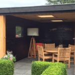 Direct achter het woonhuis hebben wij op verzoek van een klant een nieuwe schuur én, op de plaats van de oude schuur, een grote veranda geplaatst.