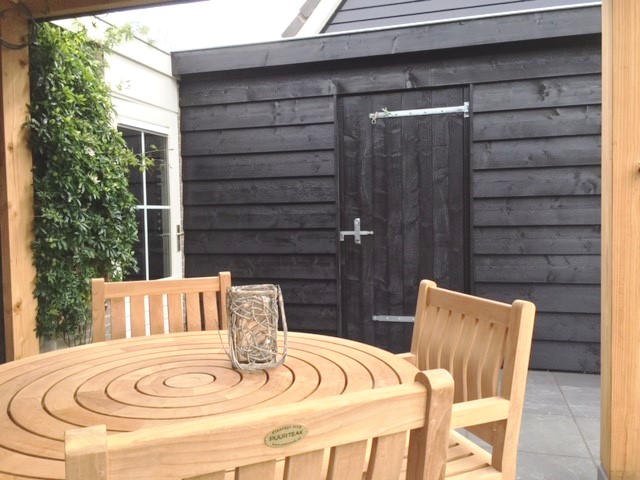 Direct achter het woonhuis hebben wij op verzoek van een klant een nieuwe schuur én, op de plaats van de oude schuur, een grote veranda geplaatst.